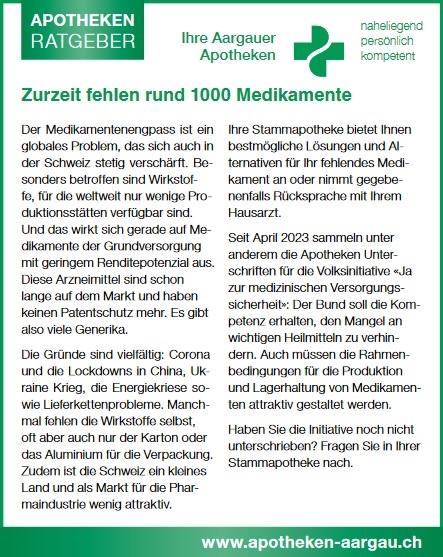 Wir unterstützen die Volksinitiative «Ja zur medizinischen Versorgungssicherheit». Fragen Sie bei uns nach.