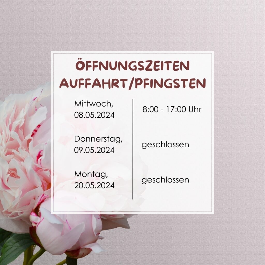 Öffnungszeiten über Auffahrt und Pfingsten