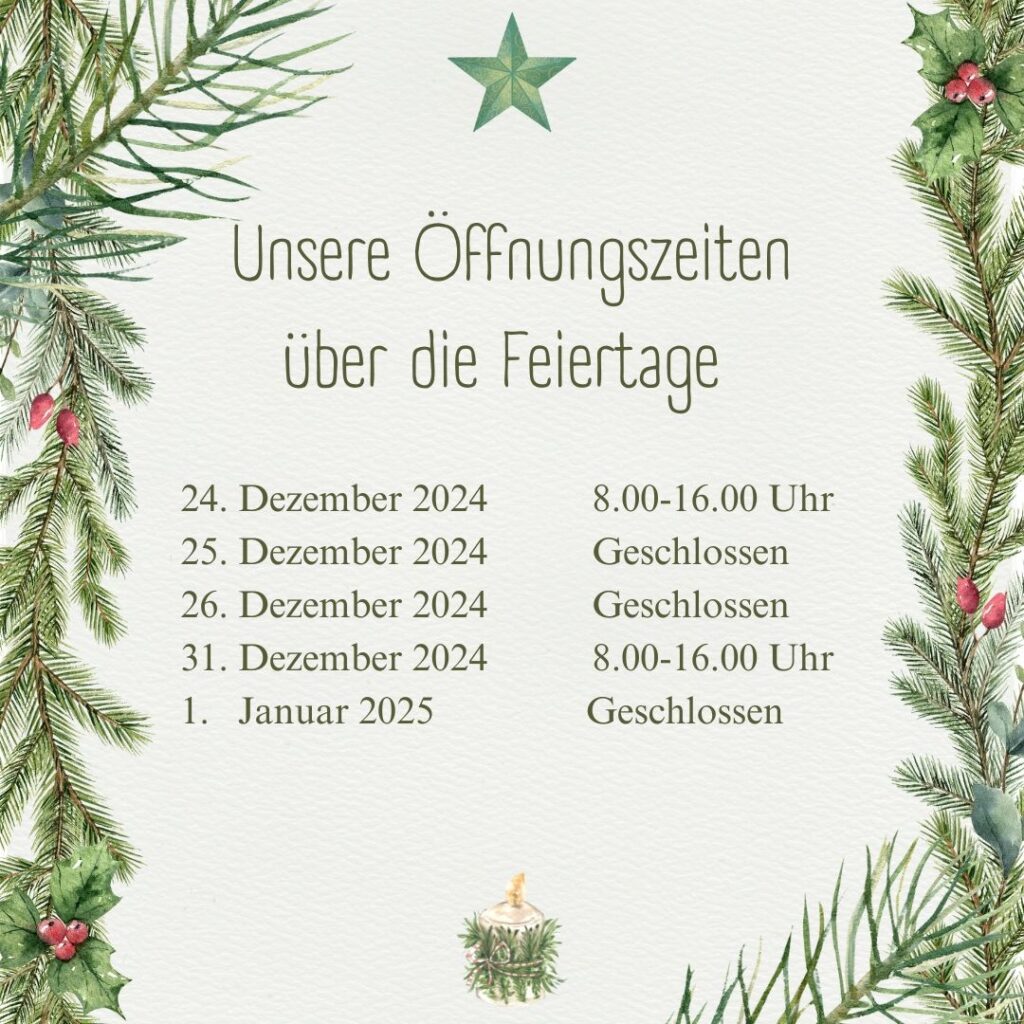 Wir wünschen Ihnen und Ihren Liebsten von Herzen eine besinnliche Weihnachtszeit, gefüllt mit Freude, Liebe und unvergesslichen Momenten. Möge das neue Jahr Ihnen Gesundheit, Glück und Erfolg bringen.